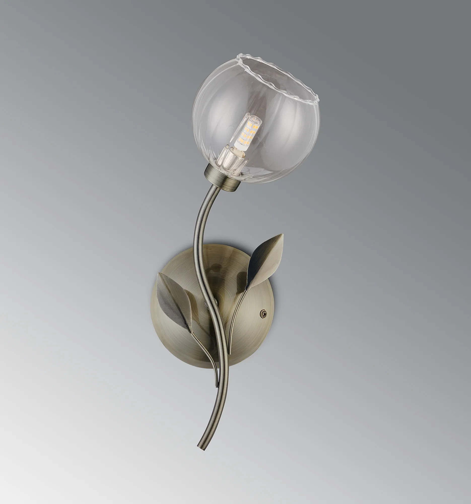 ASH brings the harmonious beauty of the natural world into your home. The detailed metalwork on each fixture utilises the G9 arms as if branches of a tree. Added dimension is found in the adornment of these arms with quaint metal leaf pieces. ASH segmented clear glass are reflective of flower petals perfectly complementing the ambience of this comprehensive range. All items within this collection are available in an antique brass finish giving natural tones or a more modern polished chrome option.
