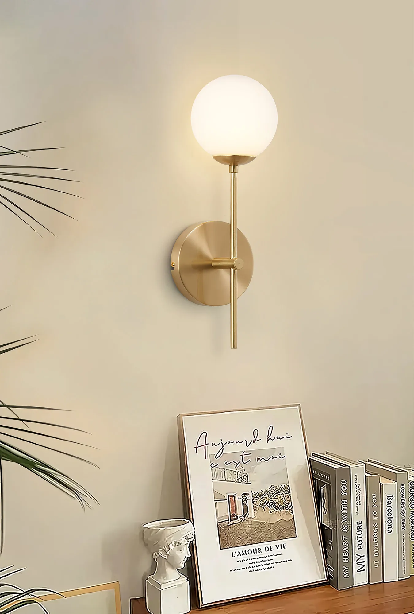 Luna Single Wall Light Satin Gold With Opal Glasses